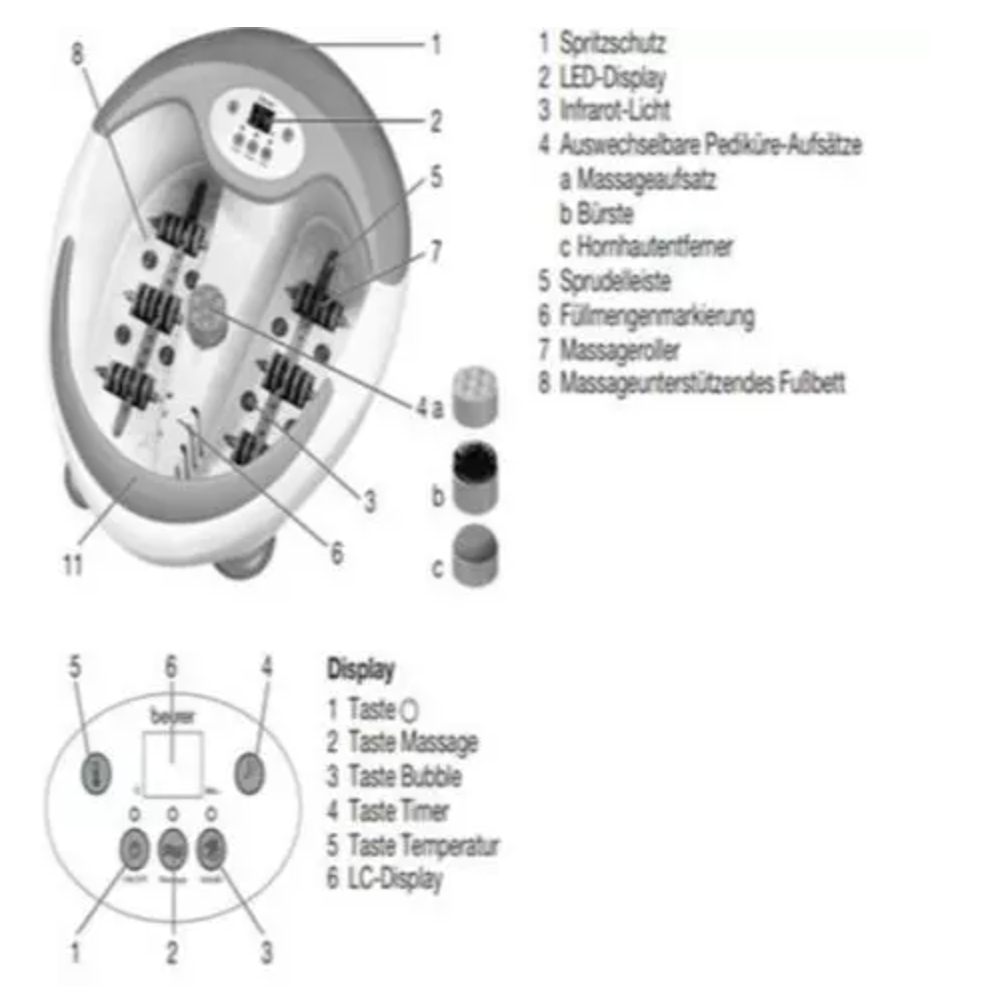 Bồn ngâm chân Beurer FB50 có các đầu massage tùy chọn: