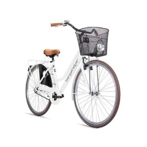 Xe đạp Bergsteiger Amsterdam cũng ghi điểm về sự thoải mái và thiết kế. Một trong những tính năng nổi bật là giỏ rộng rãi trên tay lái, Yên xe bọc da êm ái đảm bảo mang lại cảm giác lái thoải mái ngay cả trên những chặng đường dài.