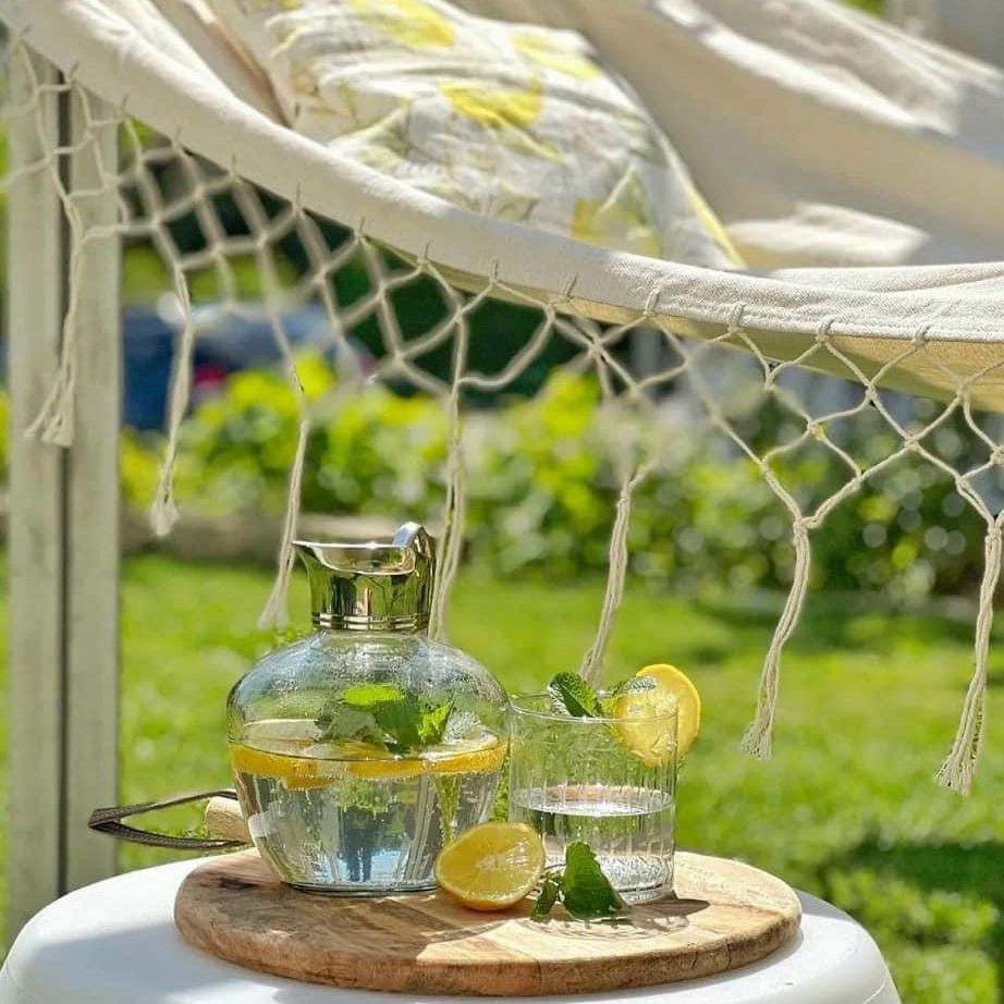 ⚜Tay cầm cong, nằm hoàn hảo trong tay ngay cả khi bình đầy và vòi rót rộng rãi được làm bằng đồng thau sáng bóng và tạo nên một sự sáng tạo đầy phong cách. Một chi tiết đẹp và đồng thời thực tế là nắp nhỏ, giúp ngăn bụi bẩn hoặc côn trùng xâm nhập vào bình khi bình được sử dụng trên sân thượng vào mùa hè. Thêm vào bình nước Những lát chanh và bạc hà là sự sảng khoái kinh điển cho những ngày hè nóng nực; Xoài, chanh và sả làm nức lòng thực khách với hương thơm kỳ lạ. Nhưng tất nhiên bạn cũng có thể phục vụ nước trái cây mới vắt và các loại nước ngọt khác trong chiếc bình này .