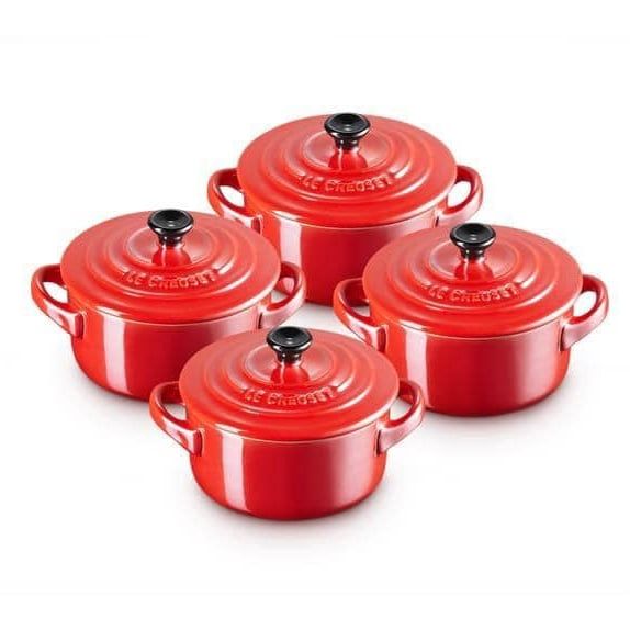 Bộ 4 nồi mini Le Creuset 10cm màu đỏ Metalic model 2022 siêu đẹp