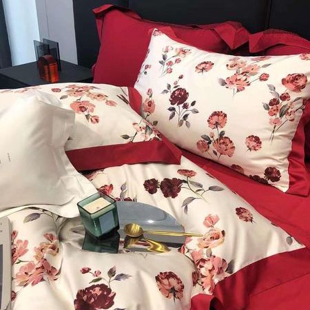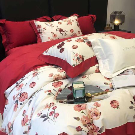 Bộ chăn ga gối hoa hồng lụa 100s cao cấp