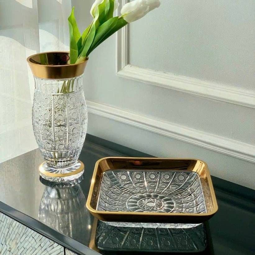 - Lọ hoa pha lê mài dáng eo mạ vàng 24k