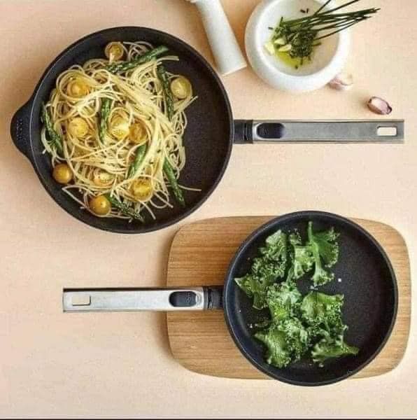 Tay cầm có thể tháo rời với khoá bấm để vệ sinh dễ dàng, đặc biệt khi xếp vào máy rửa bát không bị cồng kềnh hoặc để tiết kiệm không gian bếp của bạn.