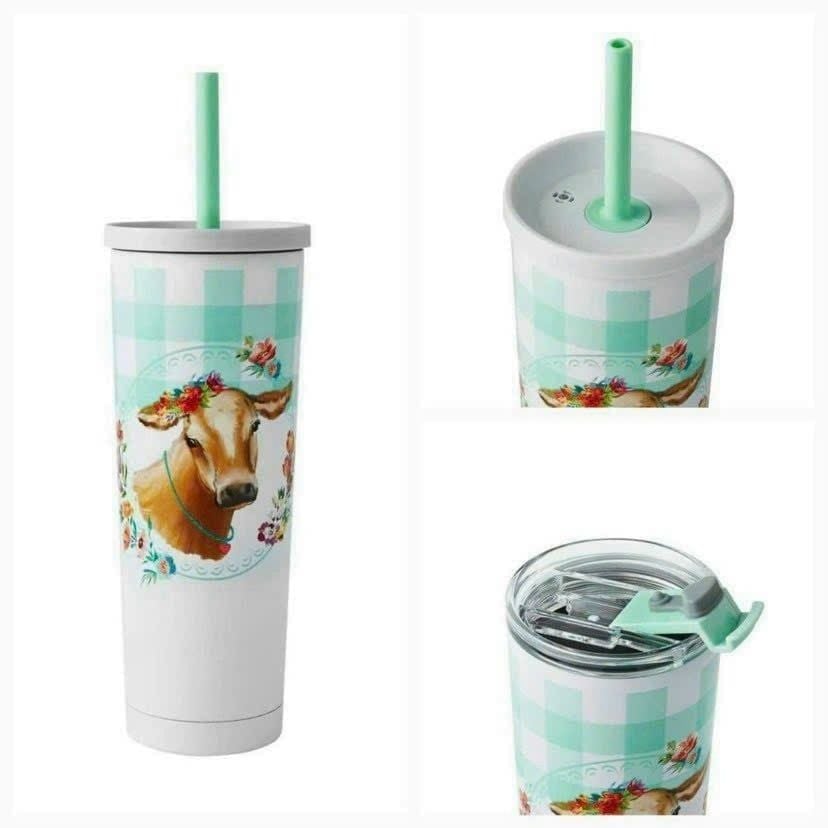 Cốc giữ nhiệt The Pioneer Woman Gingham Cow được thiết kế với 2 nắp đậy: một nắp silicon kèm ống hút & một nắp nhựa cứng tách lật. Chiếc cốc có dung tích 800ml chất lỏng này sẽ giữ cho đồ uống của bạn nóng trong 12 giờ và giữ lạnh trong 24 giờ.