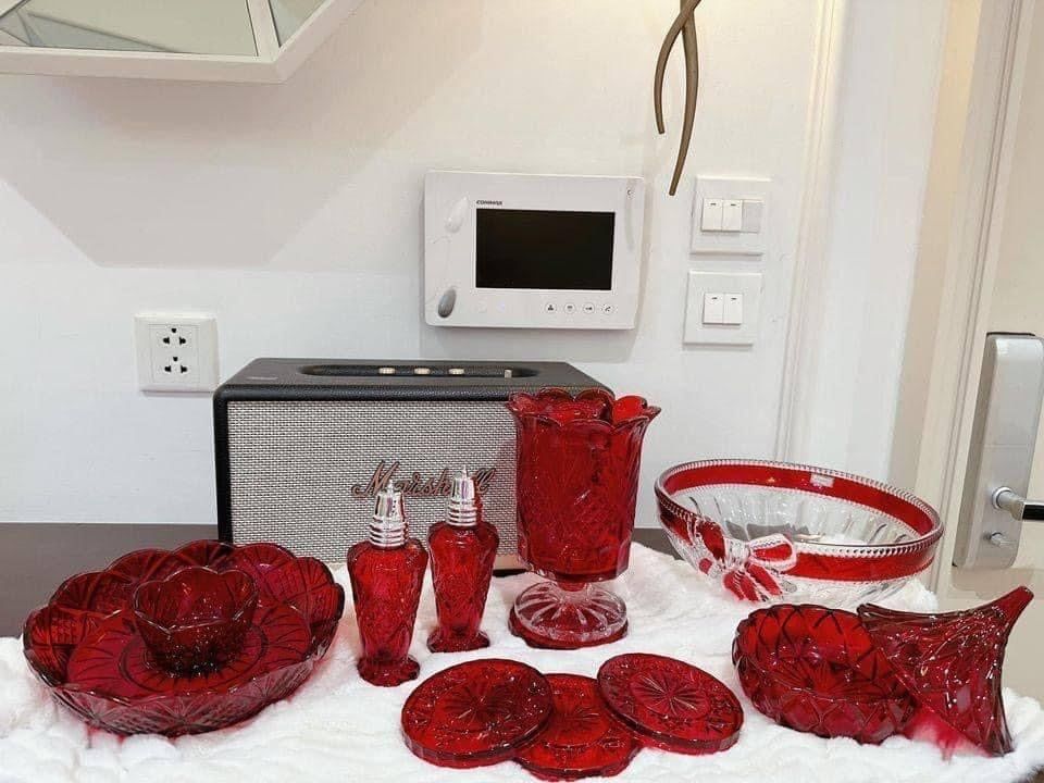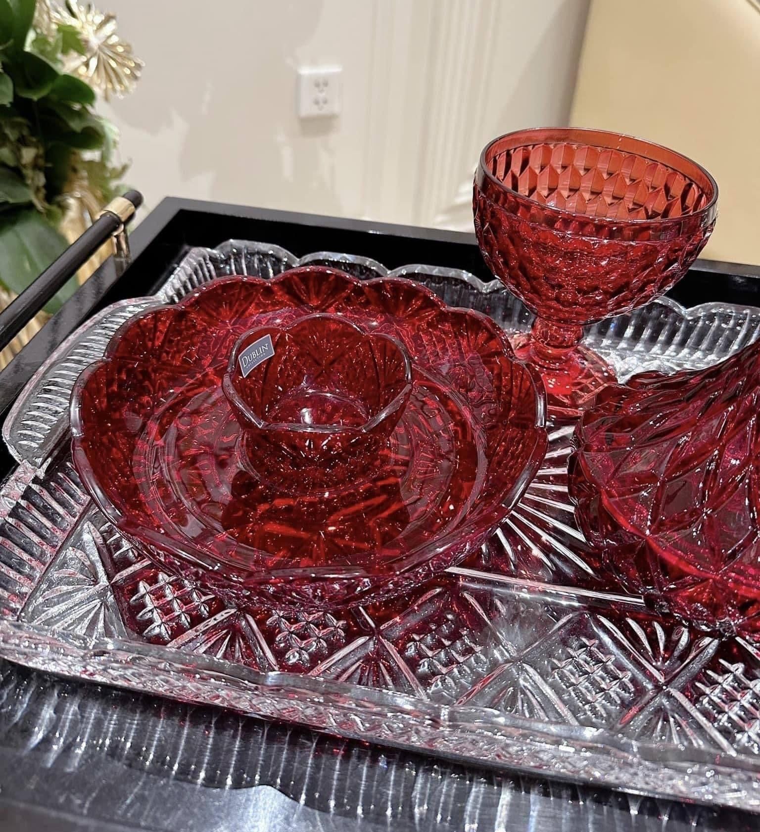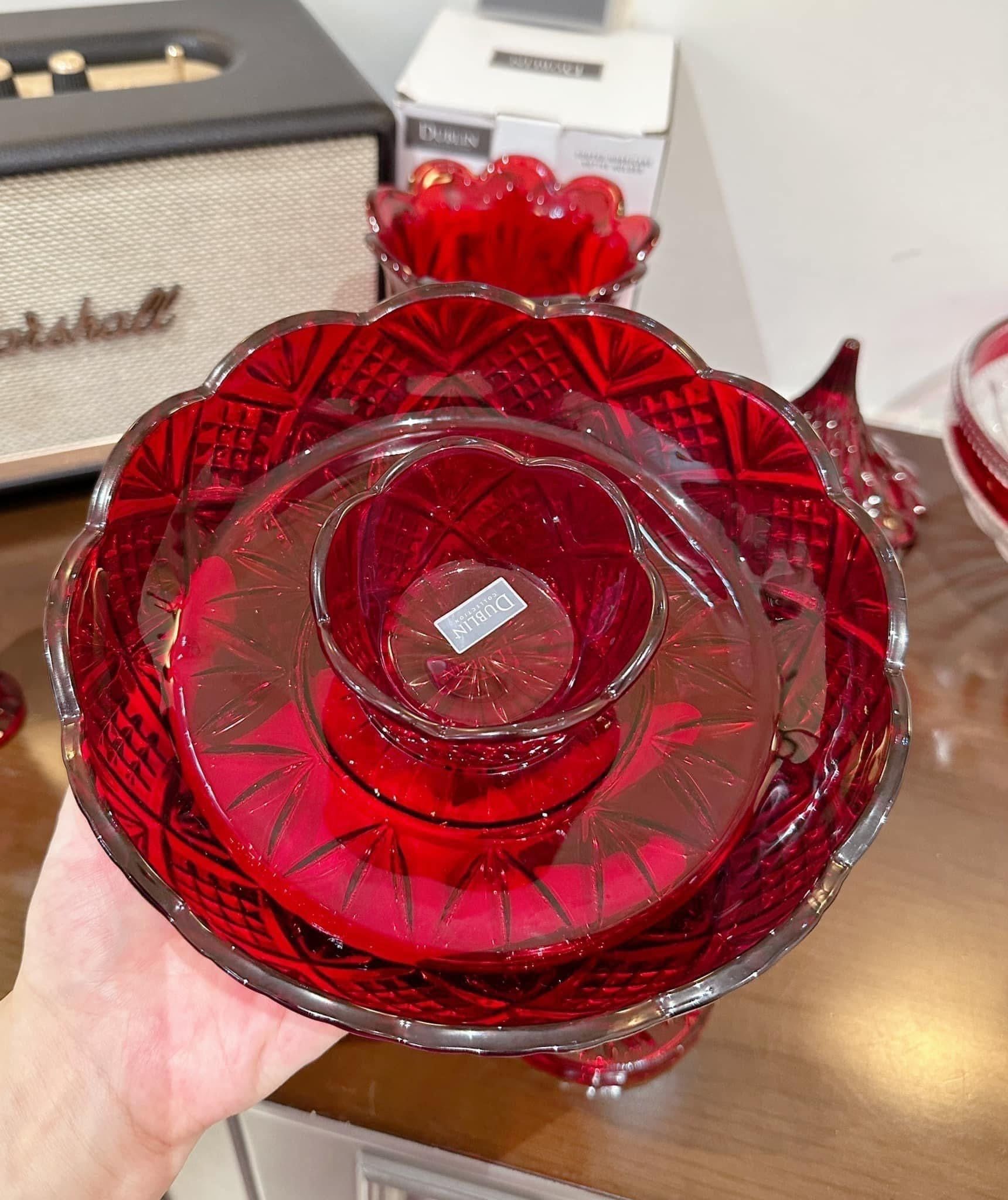 Đĩa pha lê kèm bát nhỏ Dublin 20cm màu đỏ