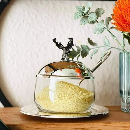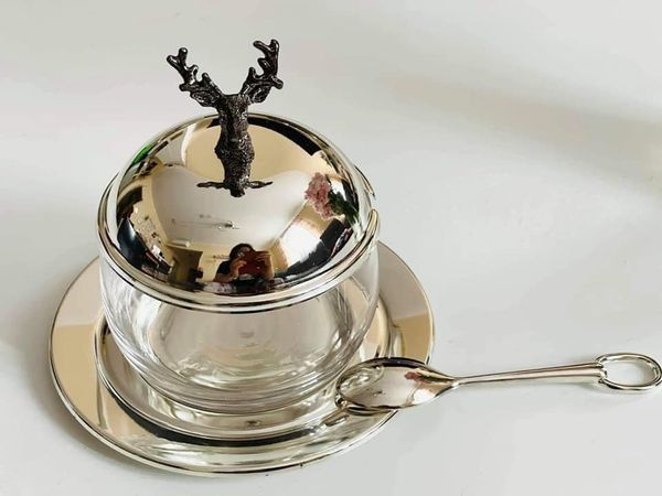 Hũ mứt từ EDZARD khiến mọi bàn ăn sáng trở nên rạng rỡ, thiết kế đơn giản được làm bằng thủy tinh pha lê. Cùng với một chiếc đĩa nhỏ và chiếc thìa mạ bạc tương ứng, set đã hoàn thành. Cũng có thể được sử dụng de bánh kẹo hoặc đường.