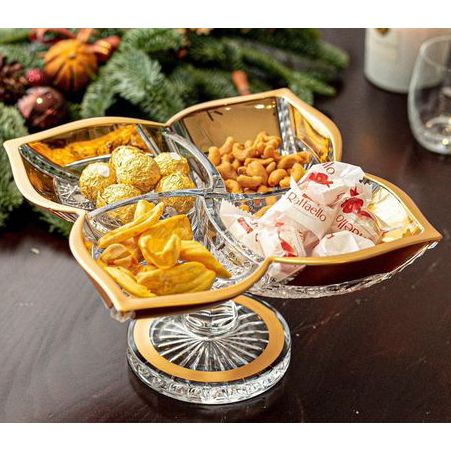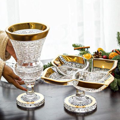 Lọ hoa và chân bồng pha lê mài viền mép vàng thật Bohemia