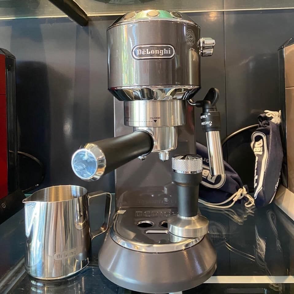 ☕️☕️Máy pha cà phê Delonghi EC785 Dedica Metallics (Thưởng thức trọn vẹn cà phê đen, Espresso, Capuchino tại gia đình) - Màu xám titan siêu sang.