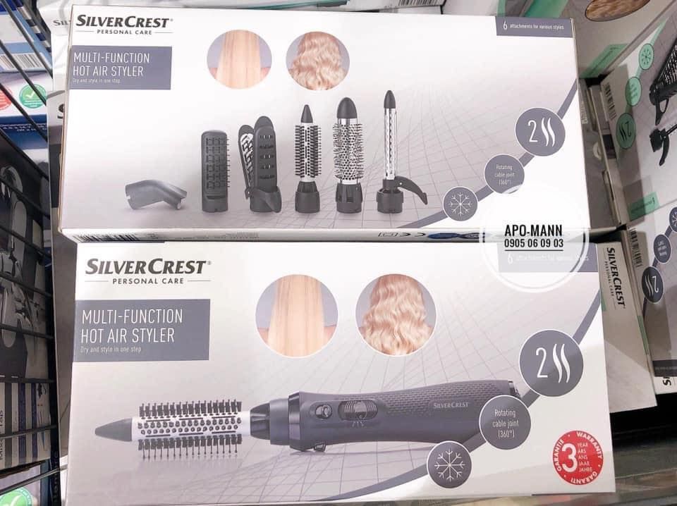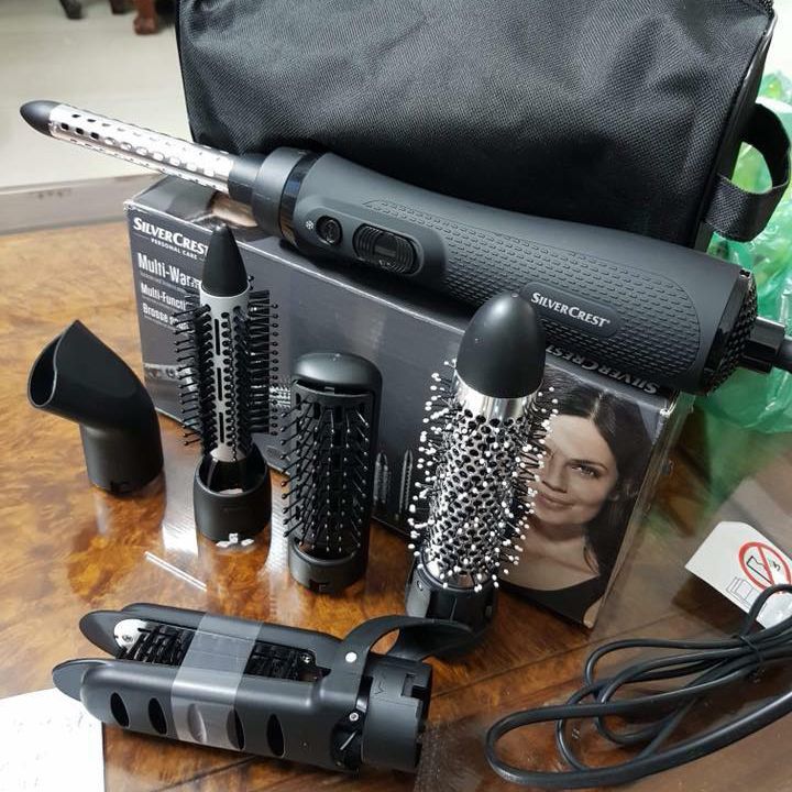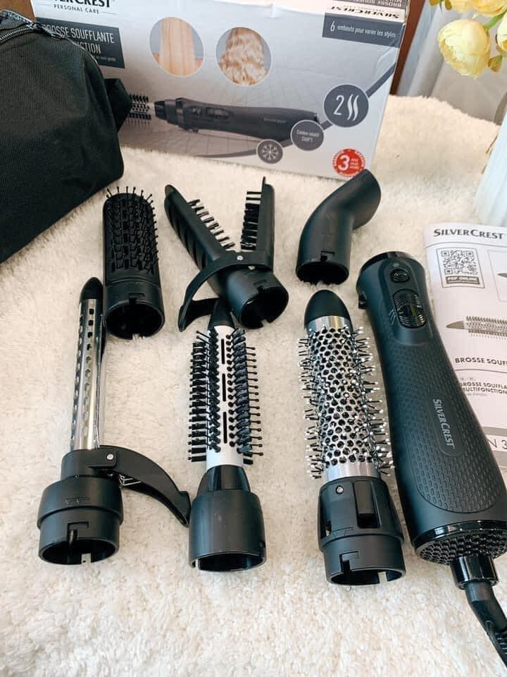 Lược điện silvercrest làm xoăn tóc với 6 đầu thay thế giúp các chị e tạo kiểu tóc tại nhà một cách dễ dàng mà không phải ra ngoài tiệm