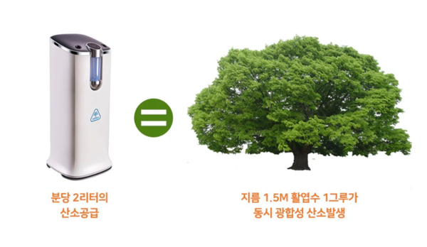 Máy tạo Oxy 02REX-F50 sản xuất 2L Oxy mỗi phút, ngang với một chiếc cây xanh to đường kính 1.5m quang hợp tạo ra.