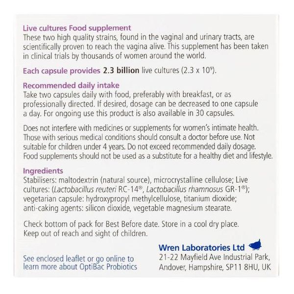 Men vi sinh OptiBac Probiotics tím dành cho phụ nữ hộp 30 viên – Cung cấp 2,3 tỷ lợi khuẩn, trị viêm nhiễm, nấm ngứa vùng kín