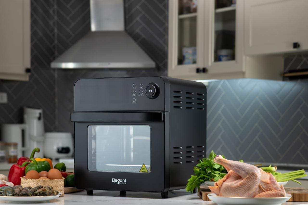 Với nồi chiên Elegant 14l bạn sẽ không cần lật, trở thức ăn mà vẫn đảm bảo thức ăn sẽ chín đều hai mặt.
