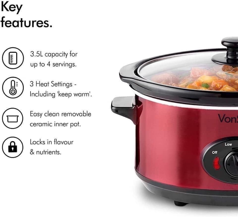 Tính năng sản phẩm Nồi nấu chậm Vonshef màu đỏ dung tích 3,5 lít