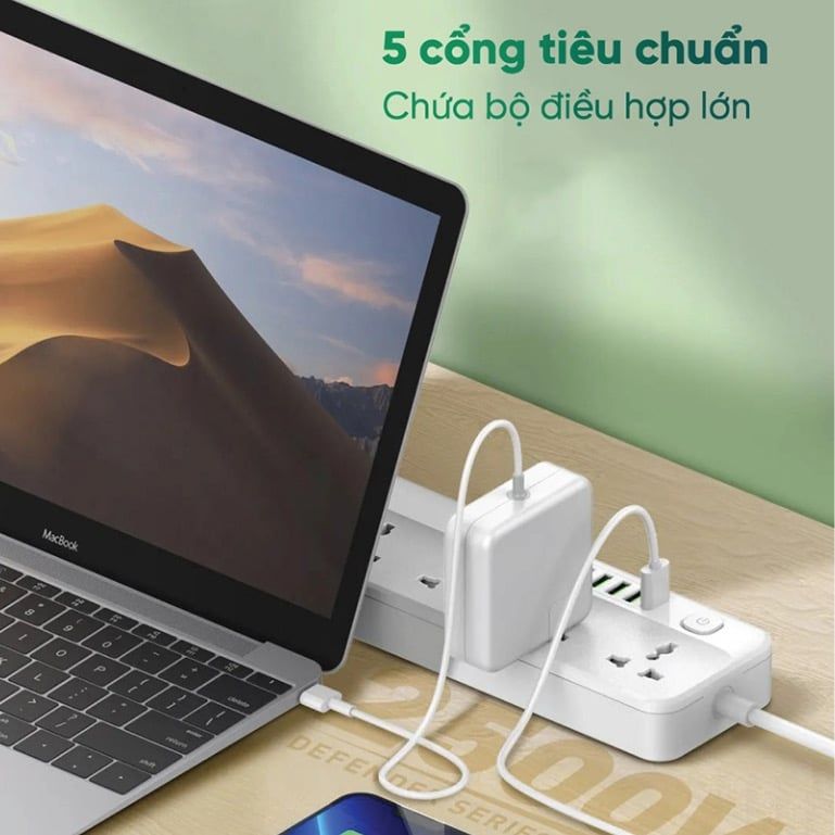 Được trang bị tới 5 cổng tiêu chuẩn thiết kế độc lập với khoảng cách hợp lý, tạo không gian đủ để cắm cùng lúc nhiều phích cắm vô cùng thuận tiện. Đây là một trạm sạc đa năng, có thể sử dụng ở bất kỳ đâu, tại nhà hoặc văn phòng và sử dụng được cho nhiều thiết bị có chân phích cắm khác nhau.
