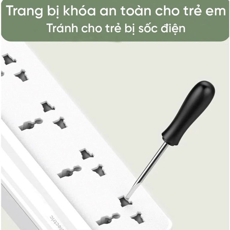 Để ngăn trẻ em tránh khỏi những nguy hiểm vô tình khi đút ngón tay hay vật kim loại vào ổ điện, ổ cắm điện đa năng Giga Electric GS-C5614 đã được trang bị mỗi giắc cắm một cửa an toàn độc lập, điều chỉnh lực và thiết kế thiết bị khóa liên động một cách tỉ mỉ và cẩn thận. Điều này khác hoàn toàn so với các loại ổ cắm thông thường, bởi các phích cắm đó chỉ cần 1 lực tương thích.
