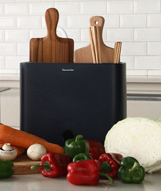 - Sấy khô bằng khí nóng đến 70 độ loại bỏ hoàn toàn hơi ẩm từ thớt và dao.